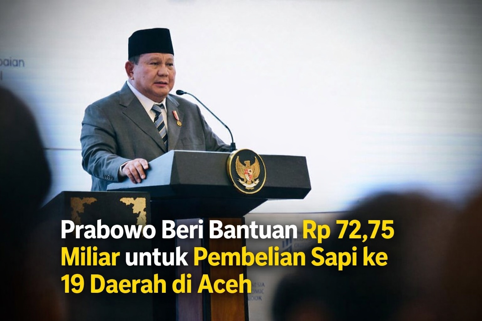 Prabowo Salurkan Bantuan Rp72,75 Miliar untuk Aceh