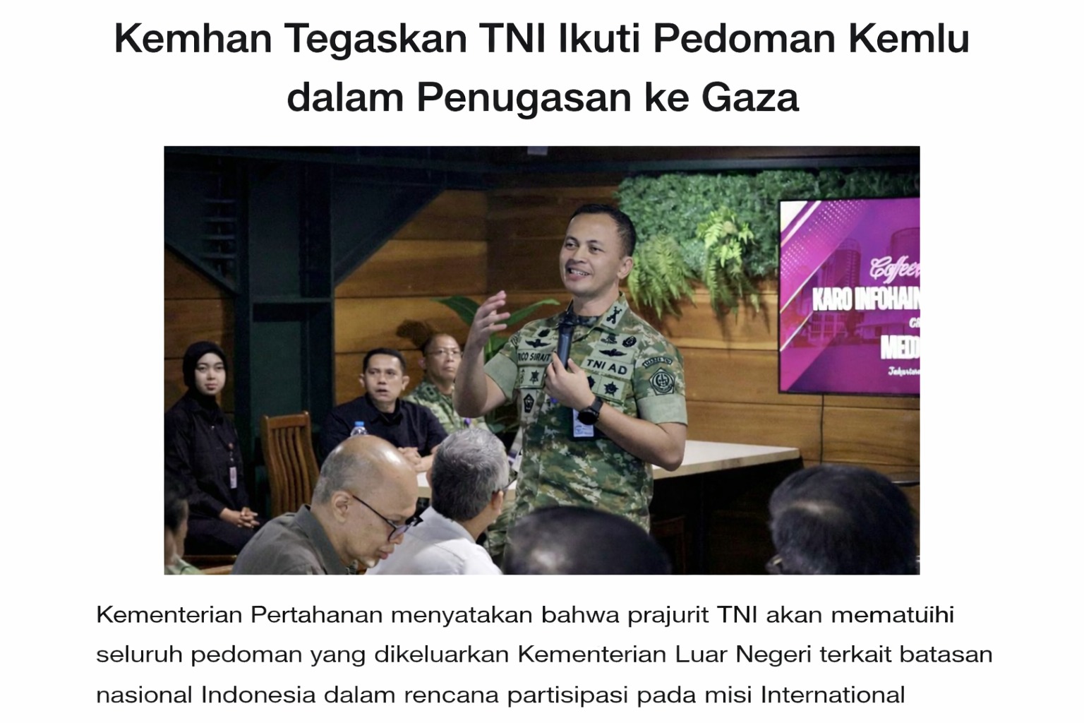 Kemhan Tegaskan TNI Ikuti Pedoman Kemlu dalam Penugasan ke Gaza