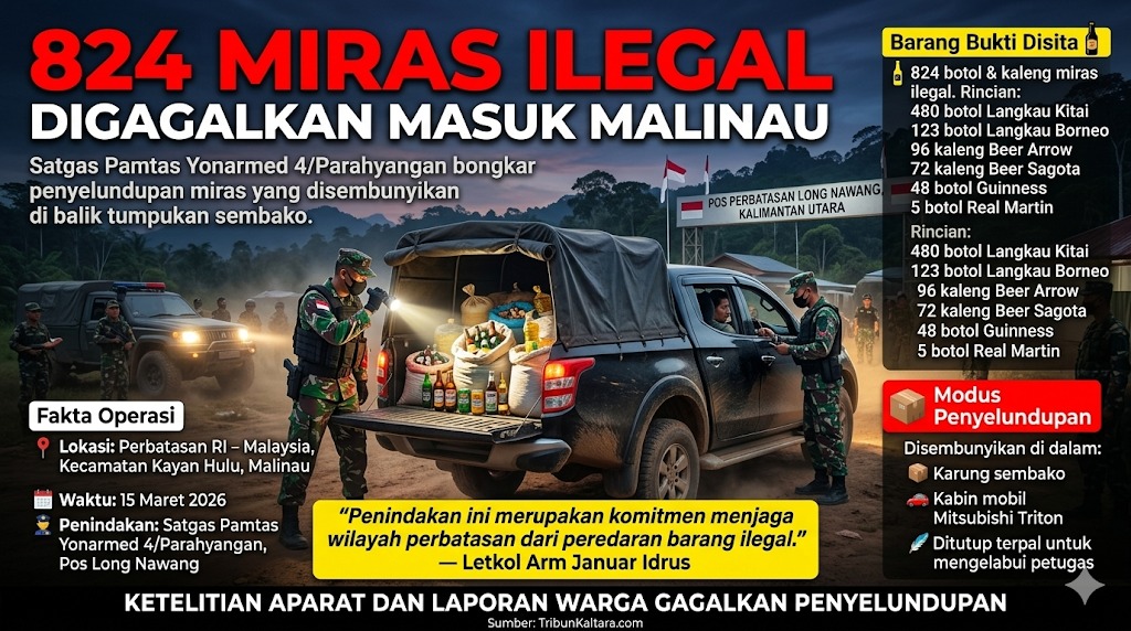 Kewaspadaan Aparat dan Masyarakat Menggagalkan Penyelundupan Ratusan Miras Ilegal di Perbatasan Malinau