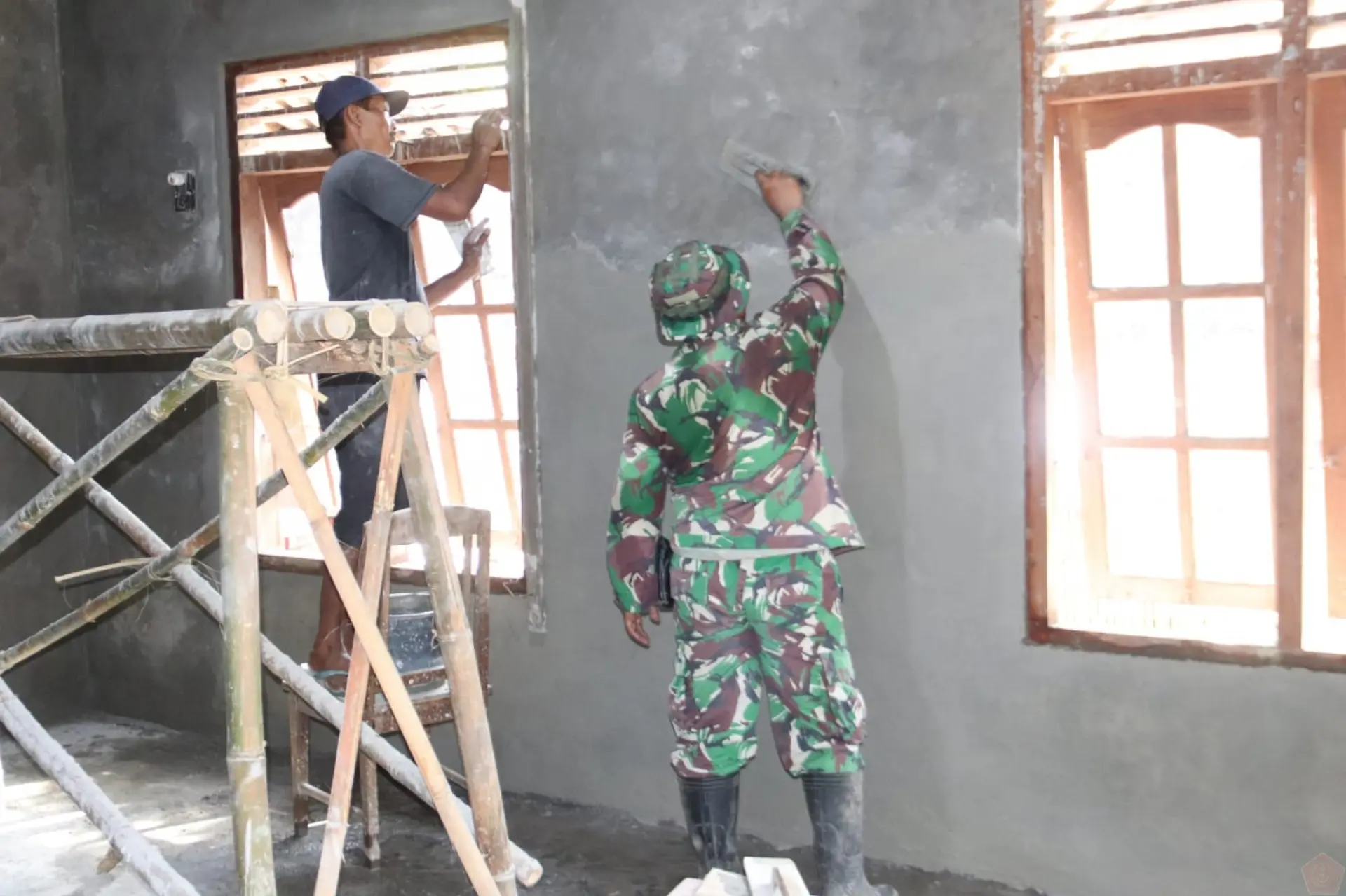 TNI dan Warga Gresik Gotong Royong Renovasi RTLH dalam Program TMMD ke-128