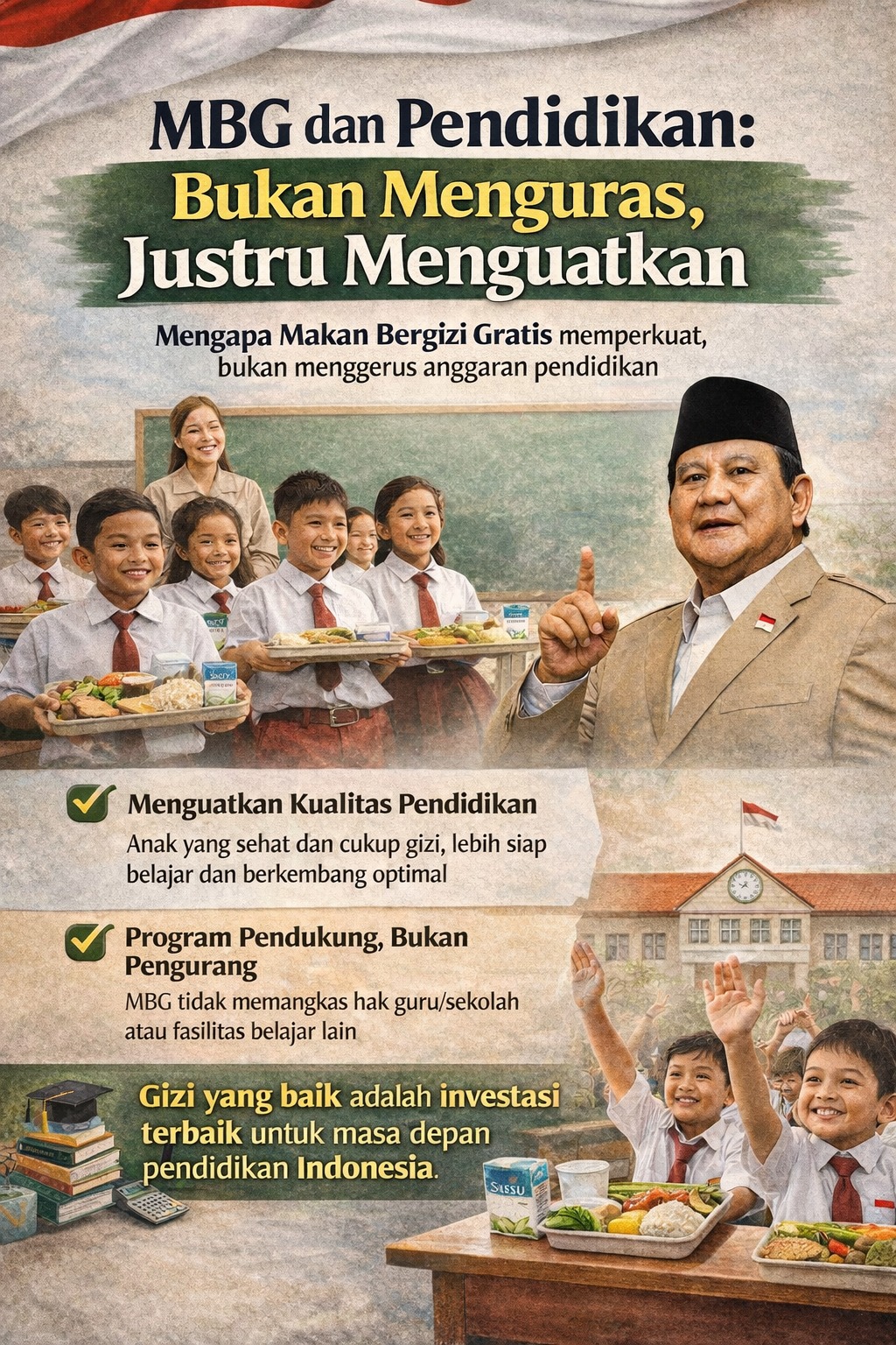 Indonesia tidak sedang memilih antara makan atau pendidikan. Indonesia sedang memastikan keduanya berjalan bersama. Karena masa depan bangsa dibangun bukan hanya dengan buku di tangan, tetapi juga dengan kesehatan yang terjaga.