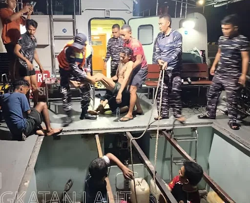 DUMAI — Prajurit Tentara Nasional Indonesia Angkatan Laut melalui unsur KAL Tedung I-1-37 jajaran Lanal Dumai berhasil menyelamatkan empat nelayan yang mengalami musibah di perairan Selat Rupat, Riau, pada Jumat (24/4/2026), setelah sampan yang mereka gunakan terbalik akibat cuaca buruk disertai angin kencang dan gelombang tinggi.