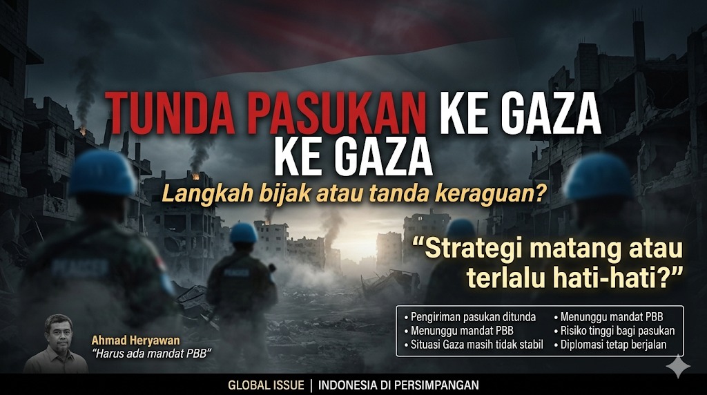 Jakarta, 23 Maret 2026 — Keputusan pemerintah Indonesia menunda pengiriman pasukan perdamaian ke Gaza menuai beragam respons. Di satu sisi dianggap langkah hati-hati, di sisi lain memunculkan pertanyaan besar: apakah ini strategi matang, atau justru cerminan keraguan negara dalam memainkan peran global?
