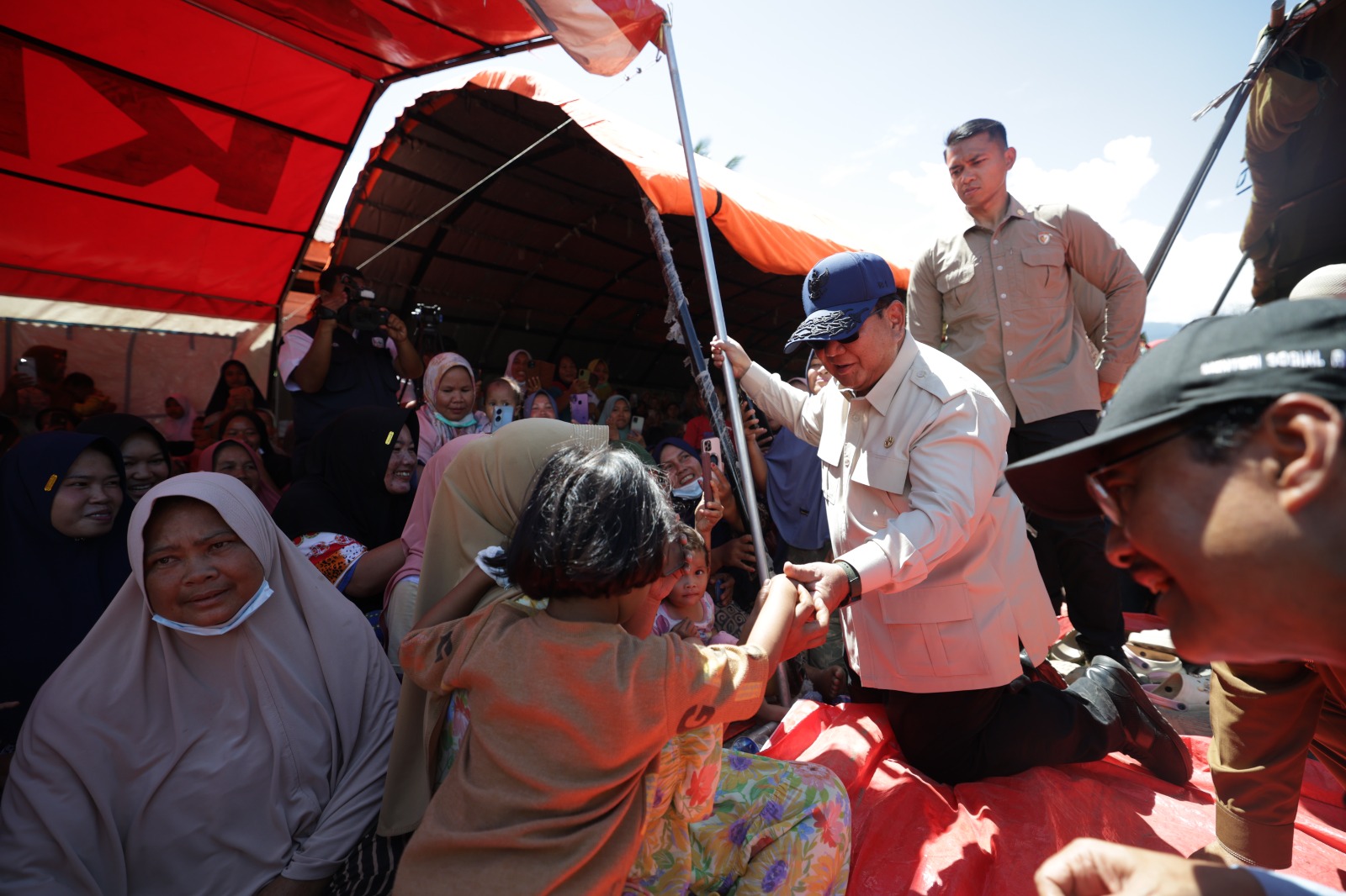 Di hadapan warga, Prabowo kembali menegaskan bahwa pemerintah bekerja sepenuhnya untuk rakyat, termasuk memastikan tata kelola negara berjalan bersih agar anggaran dapat benar-benar kembali kepada masyarakat. “Pemerintah RI adalah milik rakyat. Kita kerja untuk rakyat, kita berbakti untuk rakyat,” tegasnya. Ia juga menegaskan komitmennya memberantas penyelewengan anggaran. “Supaya tidak ada kebocoran, tidak ada maling-maling yang mencuri uang rakyat. Kalian suka nggak kalau saya sikat?” serunya, yang langsung dijawab warga dengan sorakan dukungan. Menutup pertemuan, Prabowo mengapresiasi keteguhan warga yang tetap bersemangat di tengah musibah. “Terima kasih, walaupun saudara sedang susah tapi semangatmu luar biasa,” katanya, diiringi doa warga, “Sehat selalu, Pak!”